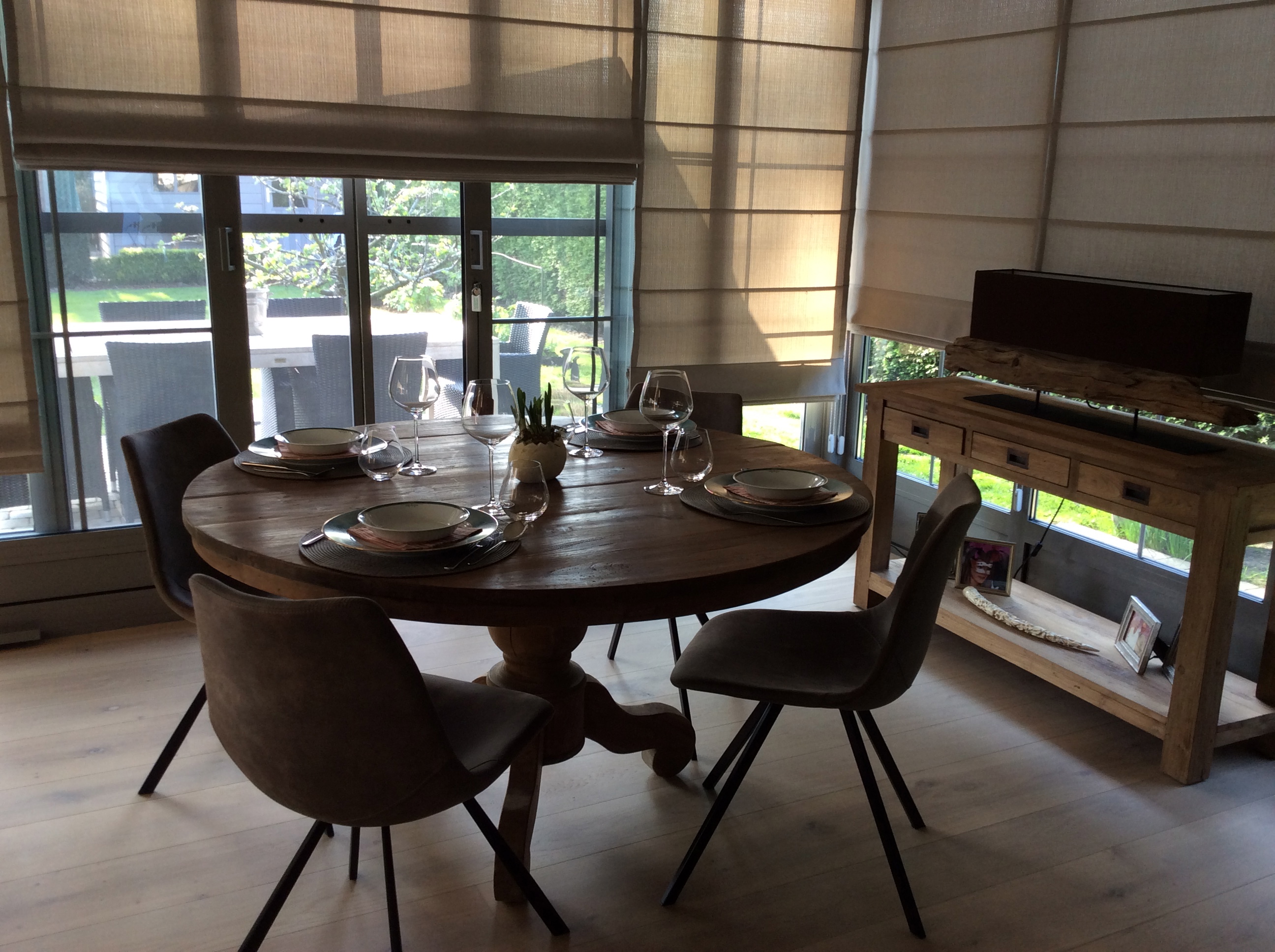 Na enkele jaren zijn wij dan, bewust en geleidelijk overgegaan tot het uitvoeren van gedeeltelijke of totaalprojecten, en vooral door het vervaardigen van massief hout.